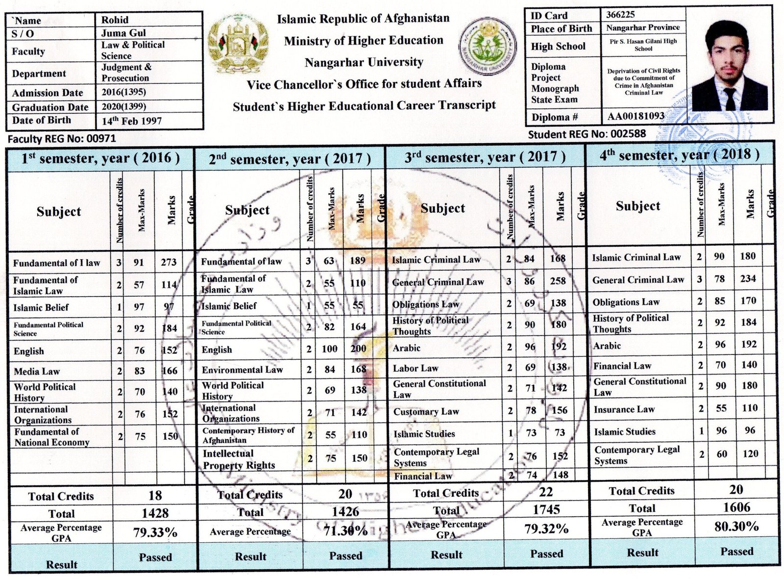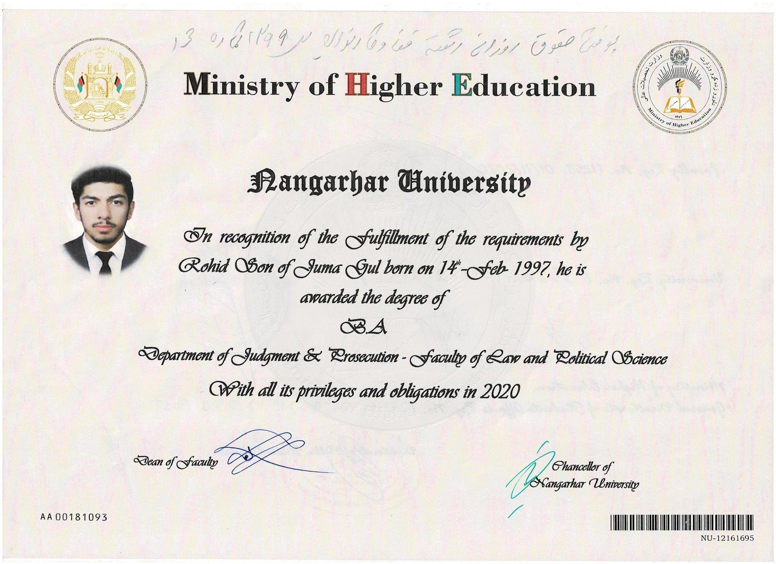 to introduce myself shortly, I want to say that I was graduated from high school in the year 1393 Hijri. later I qualified to get admission in Nangarhar University’s Law and Political science faculty in which I studied Judgment and prosecution department and finally graduated in 1393 Hijri. I have a good English language proficiency and computer skills too. I have participated in some MUN (Model United Nations) conference in Afghanistan, and also some debating championship programs.